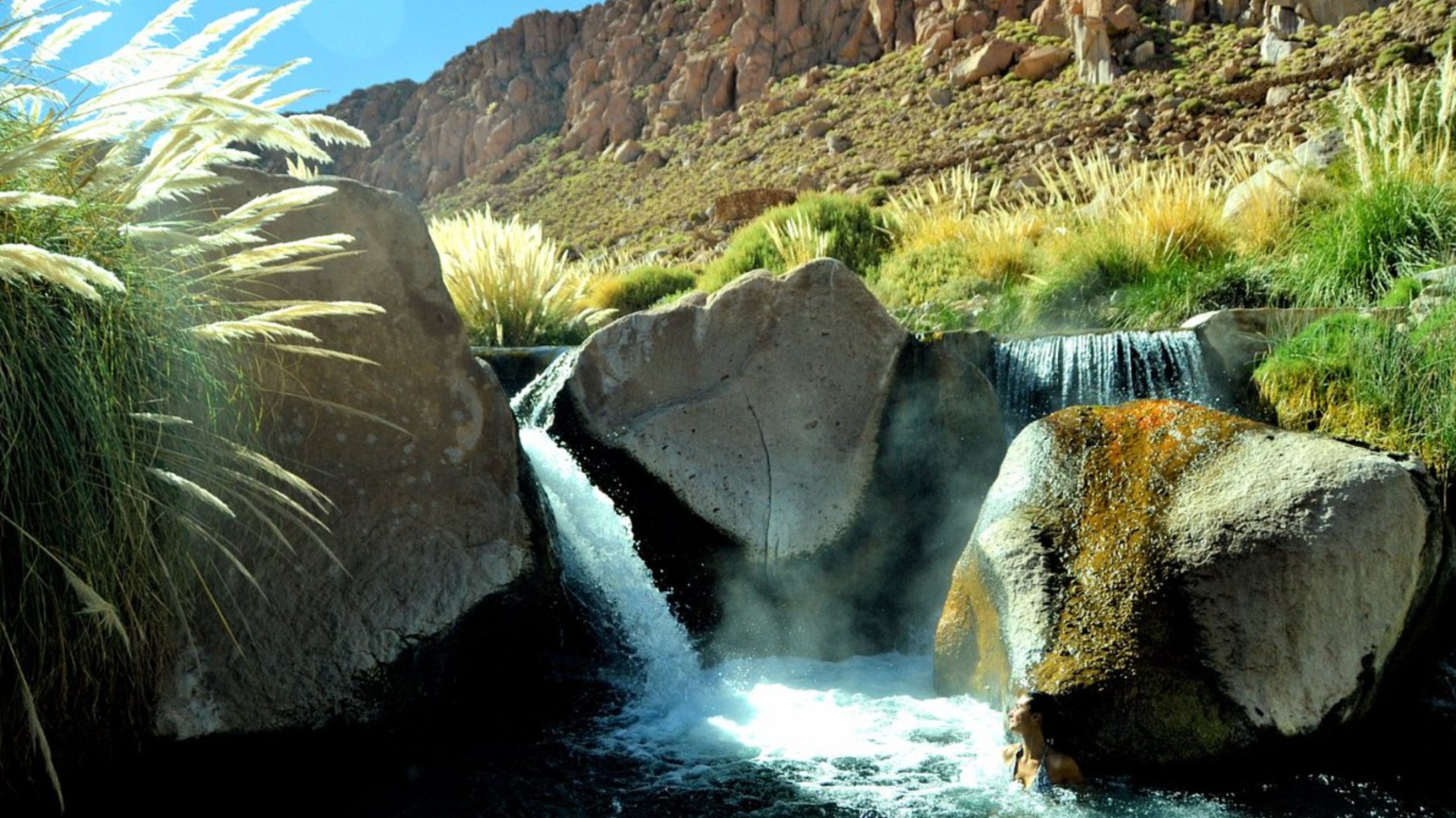 Las Termas de Puritama son uno de los oasis más sorprendentes del desierto de Atacama: un conjunto de pozones de aguas termales cristalinas, rodeados de vegetación y paredes rocosas. Sus aguas ricas en minerales mantienen una temperatura promedio de 30°C a 33°C, ideales para relajarse, aliviar tensiones y disfrutar del entorno natural.